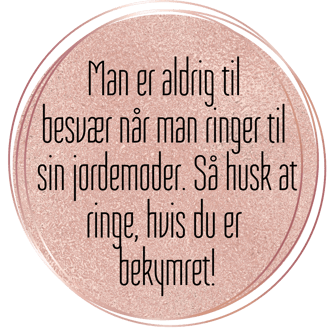 Man er aldrig til besvær når man ringer til sin jordemoder. Jordemødre er på arbejde døgnet rundt, og vi vil altid hellere snakke med jer en gang for meget end for lidt. Så husk at ring, hvis du er bekymret!